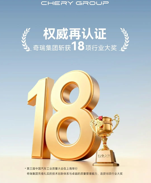 在第三届中国汽车工业质量大会上,奇瑞集团凭借扎实的技术创新体系与卓越的质量管理能力,一举斩获 18 项行业大奖,以权威认证的方式,展现了其在技术、产品、品牌层面的综合硬实力。