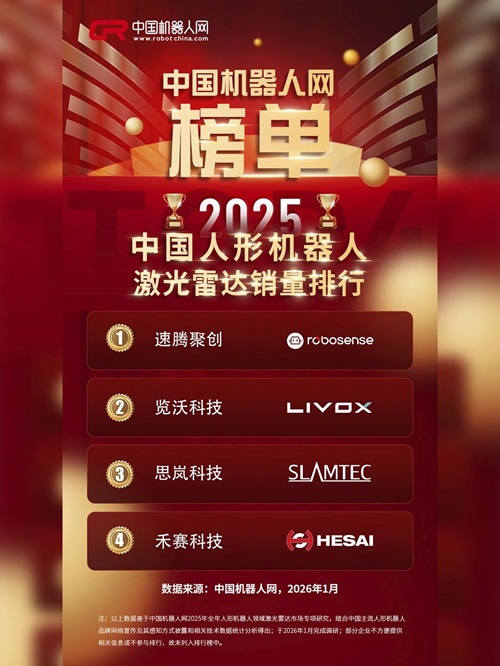 速腾聚创:斩获2025年人形机器人激光雷达销量桂冠